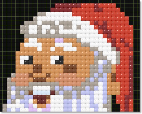 On the left, a photo converted into using just the ‘default palette’ ( a small selection of 25 random DMC shades)