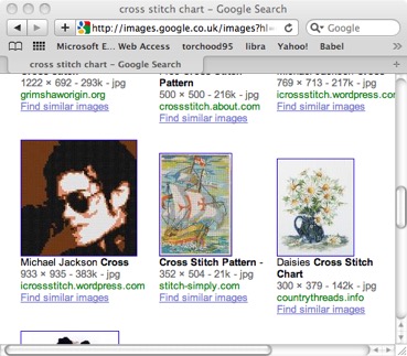 Take a look at this screen shot, taken from a random search on Google for ‘cross stitch chart’